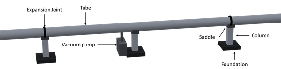 The superstructure comprises the piping, expansion joints, switches and low pressure environmental control. Switches are necessary for the movement of the pods from one tube to another, allowing changes of direction to stations, other routes/destinations or maintenance areas.
