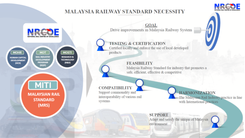 Mr Shahriman Shafein, Director General of Rail at MOT Malaysia, recalled in his opening speech that the railways are the future of sustainable transport for Malaysia, and that the National Standard Committee-Land (NSC-L) will supervise the work of the NRCOE in terms of standards preparation and creation in close partnership with the Ministry of International Trade and Industry (MITI) and the Standard and Industrial Research Institute of Malaysia (SIRIM), as well as the relevant technical committees and working groups.
