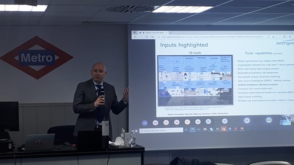 The main objective of this event was to demonstrate how the SAFETY4RAILS Information System (S4RIS), together with its main tool components, can help rail and metro operators manage a combined cyber-physical attack targeting a metro station based on a simulation scenario taking place in Madrid. Even though the attack focused on a specific metro station, S4RIS applied a holistic approach with mitigation measures considering the Smart City paradigm, public authorities, interconnected infrastructures and cascading effects across the whole metro system.