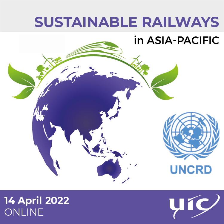 UIC and UNCRD are pleased to invite you to a webinar dedicated to sustainable railways in Asia-Pacific to be held online on 14 April 2022 from 8 to 11 a.m. Paris time/4 to 7 p.m. Nagoya time.